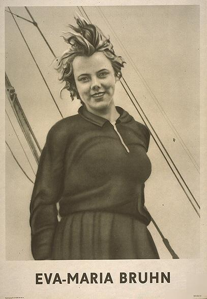 Wenn man Google nach „Eva-Maria Bruhn“ befragt, findet man nicht sonderlich viel zur Person, die man in der DDR mit folgender Reproduktion ihres Fotos als Plakat würdigte: